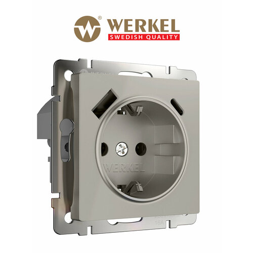 Встраиваемая розетка с заземлением, шторками и USB тип A+C Werkel W1271704, быстрая зарядка Quick charge 3.0, дымчатый
