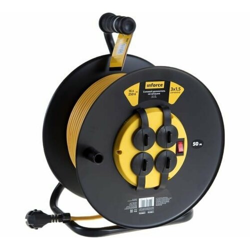 Силовой удлинитель на катушке Inforce 4 гнезда, с/з ПВС 3х1,5 16A 50м
