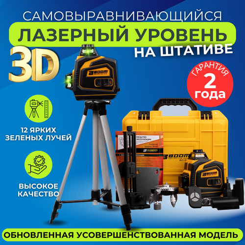 Строительный лазерный уровень 3D 12GX 12 линий зеленый луч. BOOM TOOLS. В комплекте со штативом 80/300 см