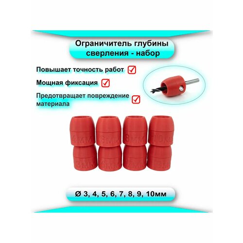 Ограничитель глубины сверления с подшипником. Набор 3-10 мм.