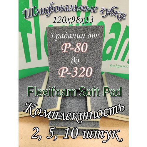 Шлифовальная губка Р-120; Абразивная губка двухсторонняя; Flexifoam; 5 штук.