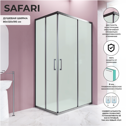 Душевой уголок Ulitka Safari 120x80х195 см стекло прозрачное 6 мм профиль, матовый серебряный