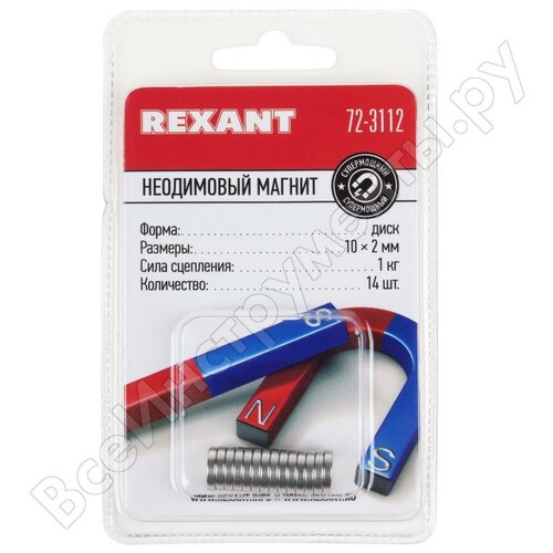 Неодимовый магнит диск 10х2мм сцепление 1 кг (упаковка 14 шт) Rexant
