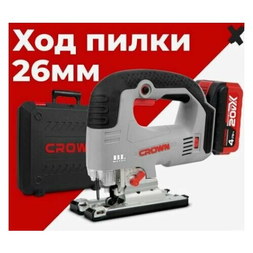 Лобзик аккумуляторный CROWN BL CT25003HX-4 BMC (бесщёточный, 20В, 2акк*4.0Ач LiIon, 700-3000об/мин, 2,12кг, кейс)