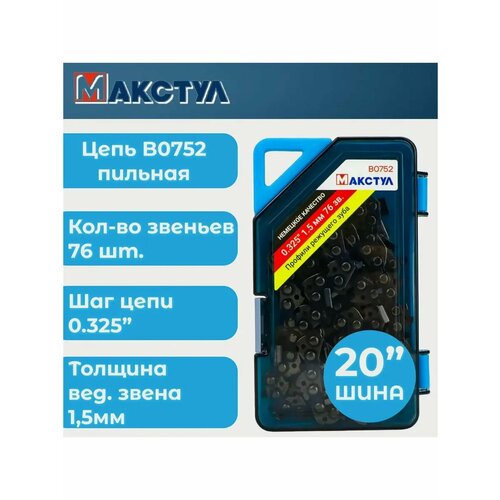 Цепь пильная для пилы 0.325, 1.5 мм, 76 звеньев, оснастка для пилы, Maxtool