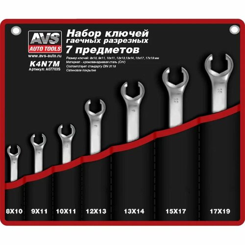 Набор ключей гаечных разрезных в сумке (8-19 мм) (7 предметов) AVS K4N7M