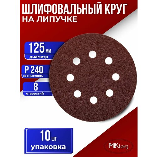 Круг шлифовальный D 125 мм P 240 на липучке 10 шт 8 отверстий