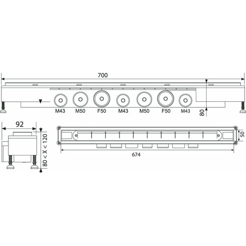 Трап для душа BAD717002 Profi с комбинированной решеткой (полная или под плитку) 60х700 мм