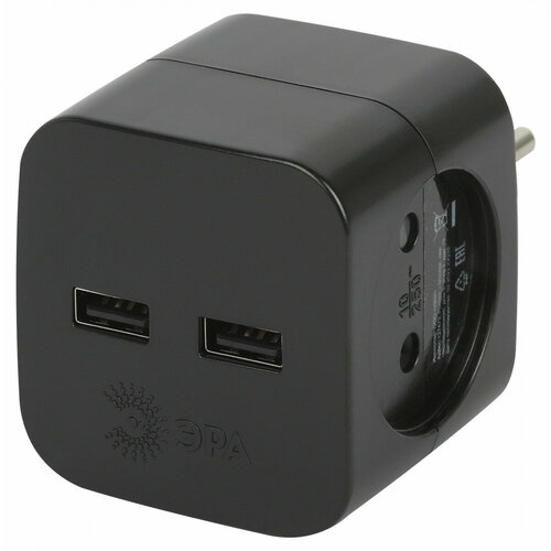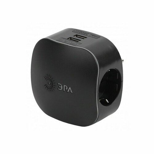 ЭРА Разветвитель электрический ЭРА SP-2-USB-B на 2 розетки 220V + 2xUSB 2400mA, без заземл 10А (черный)