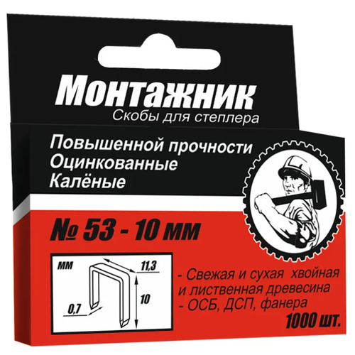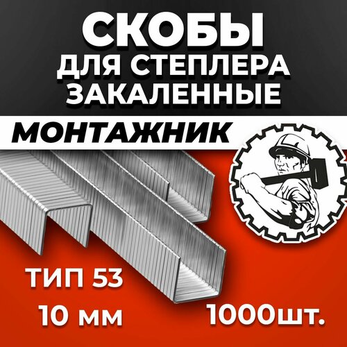 Скобы для степлера строительного, мебельные закаленные , тип 53, 10 мм, уп.1000 шт, Монтажник