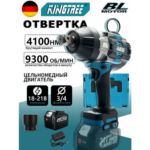 Гайковерт KINGTREE, 4100 Нм, 21В, 9Ач, 1 АКБ, быстрая зарядка, защита от перегрузок