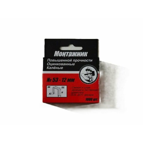 Скобы для степлера строительного, мебельные закаленные, тип 53, 12 мм, уп.1000 шт, Монтажник
