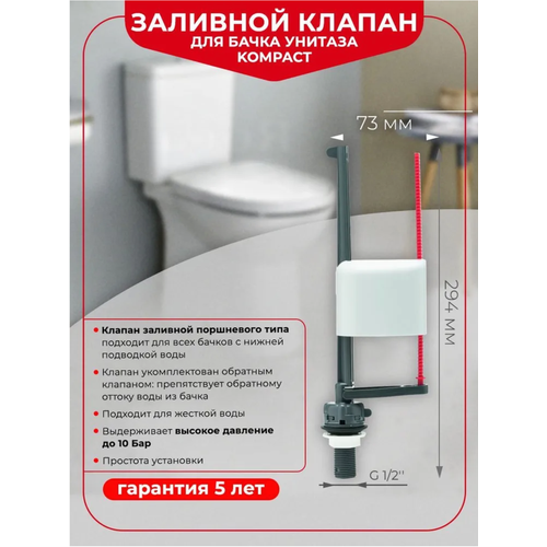 Клапан заливной Wirquin Kompact поршневого типа 1/2" нижняя подводка