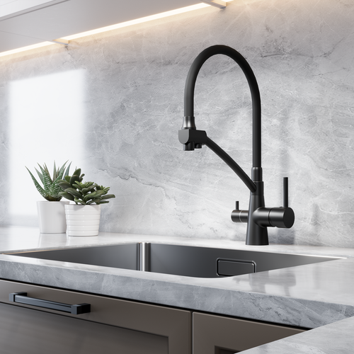 Смеситель для кухни с гибким изливом с подключением к фильтру, арт. EL_K102 total black