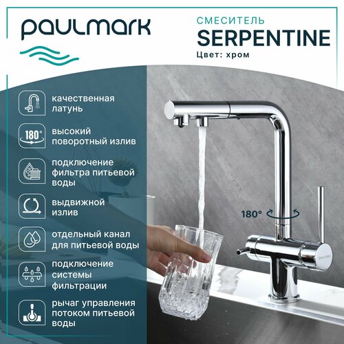 Смеситель для кухни с выдвижным изливом Paulmark SERPENTINE, с подключением фильтра питьевой воды, Se213222-CR