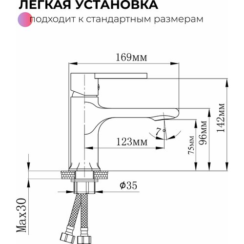 Смеситель для раковины в ванную комнату Wellsee ONCE! and forever 201000206, в наборе 4 в 1: смеситель, донный клапан click-clack, металлический сифон, угловые вентили 2 шт (цвет)