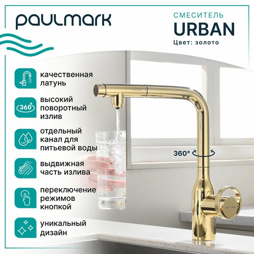 5 летСмеситель для кухни от немецкого производителя Paulmark.• Материал: латунь.• Управление: рычажное.• Механизм: керамический картридж.• Излив: поворотный, выдвижной.• Отдельный канал и аэратор для питьевой воды.• Аэратор.• Тип подводки: гибкая.• Стандарт подводки: 1/2.• Отверстия для монтажа: 1.