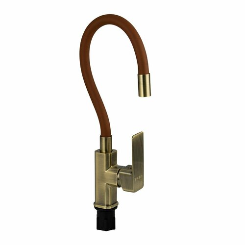 Смеситель для кухни FABIA 9658 цвет бронза шаровый с гибким коричневым изливом корпус квадратный