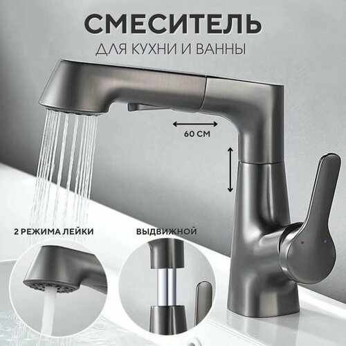 Смеситель для кухни и ванной с гибким выдвижным изливом, кухонный кран для раковины выдвижной, 2 режима лейки