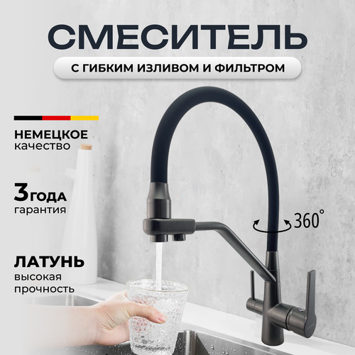 Смеситель для кухни с фильтром для питьевой воды, графит, латунь