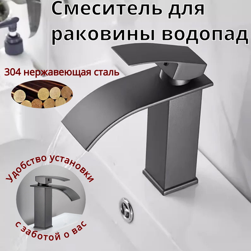 Смеситель для раковины, смеситель для ванны/ванной, кухни, водопад темно-серый, латунь