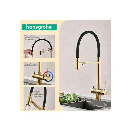 Смеситель для кухни Hansgrohe с гибким изливом и подключением фильтра для питьевой воды, сатин HS114KJ-15YT