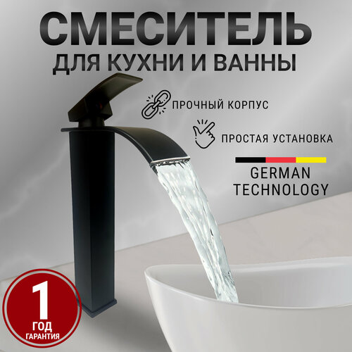 Смеситель для кухни и ванны. кран для раковины высокий водопад, матовый с каскадным изливом