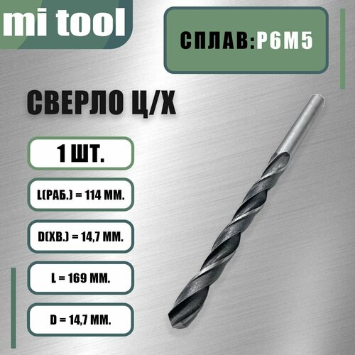 Сверло 14,7 мм ц/х по металлу Р6М5 класс "В"