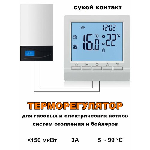 Терморегулятор для газового и электрического котла, термостат для отопления бойлеров, контроллер электронный 3А для водонагревателей сухой контакт