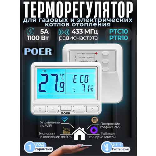 Умный терморегулятор отопления беспроводной, термостат POER PTC10/PTR10 WiFi частота 433МГц
