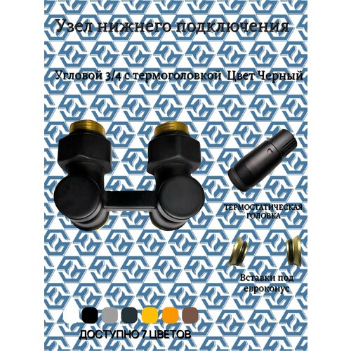 Узел нижнего подключения радиатора / Group HS / угловой, матовый, термоголовка