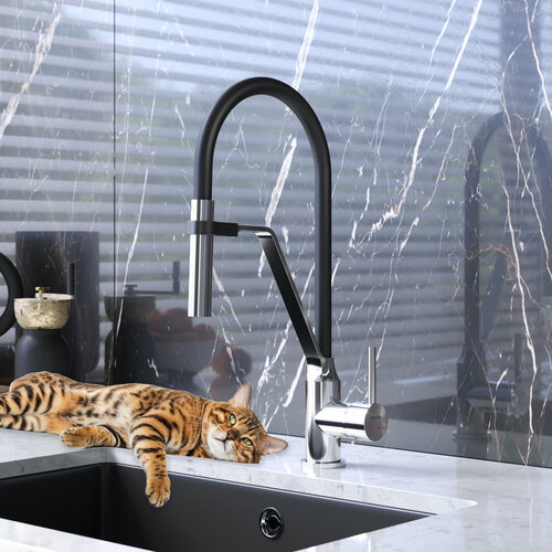 Смеситель для кухни с гибким силиконовым, поворотным изливом и двухрежимной лейкой Shevanik