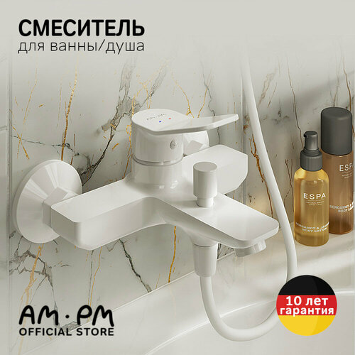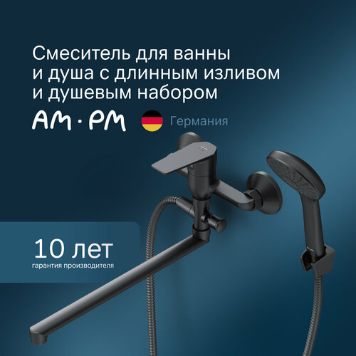 Смеситель для ванны AM.PM Brava, керамический картридж SoftMotion, покрытие Everlast, латунь, Гарантия 10 лет