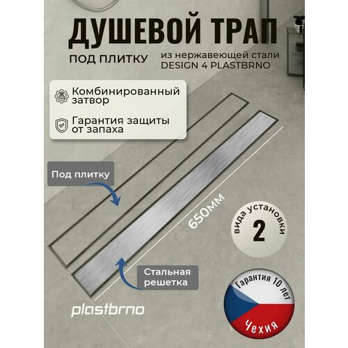 Душевой трап с решеткой 65см под плитку и комбинированным затвором DESIGN 4 SZA4650 PLASTBRNO