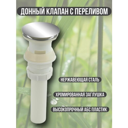 Верхняя часть санакс - (донный клапан) сифона-автомата на раковину с большой хромированной крышкой, нержавеющая сталь, пластик АБС