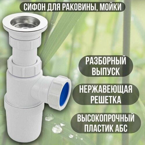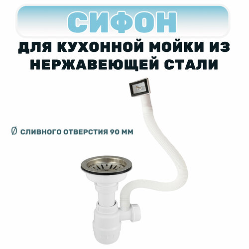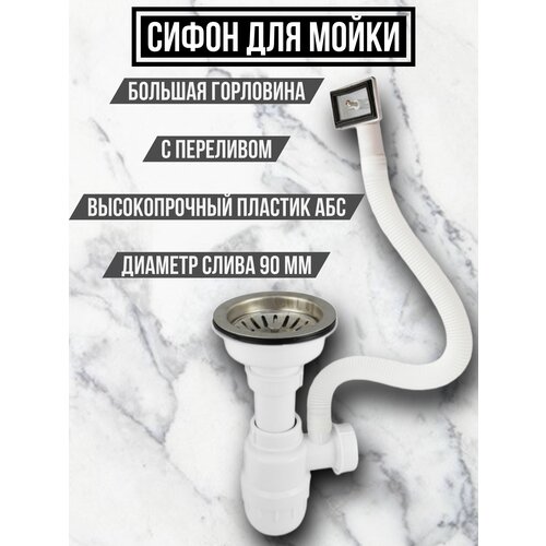 Сифон для мойки из нержавеющей стали с большой горловиной и переливом
