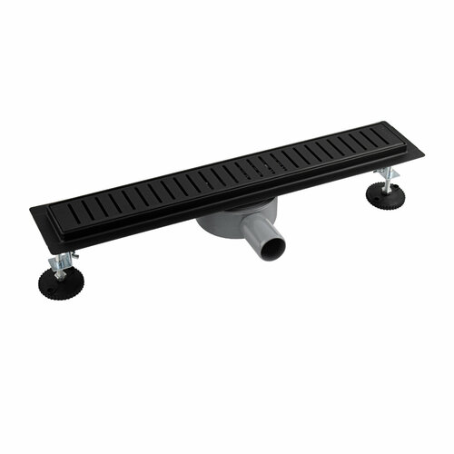 Линейный душевой трап SANTREK AQUA С-70600 BLACK нерж 70*600мм (горизонтальный выпуск 360 гр, ф40) черный матовый, сухой затвор и гидрозатвор
