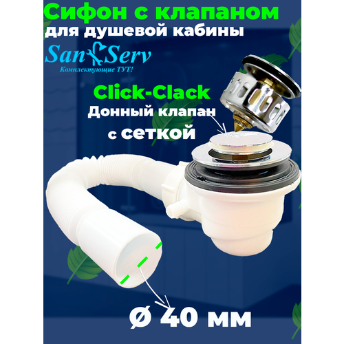 Сифон с гофрой и клапаном в комплекте для душевой кабины с сеткой (с грязеуловителем) S-S2