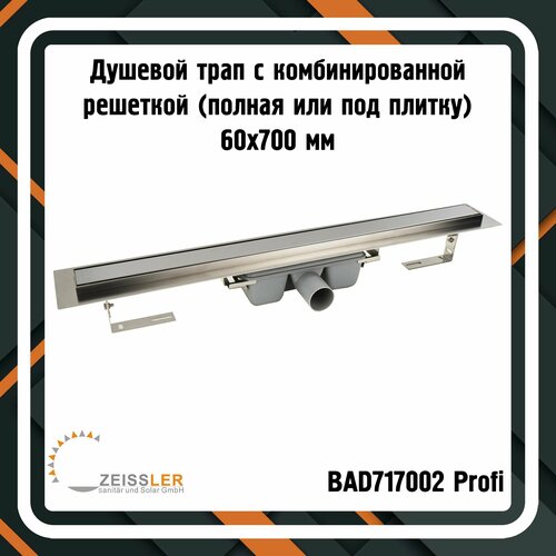 Трап для душа BAD717002 Profi с комбинированной решеткой (полная или под плитку) 60х700 мм