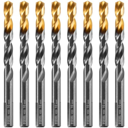 Сверло по металлу, 10 мм, HSS-Tin, Golden Tip, 8 шт. Denzel [717222]