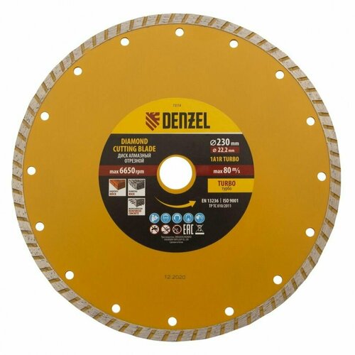 Диск отрезной алмазный сегментный турбо сухое резание 230х22,2 мм Denzel (Дензел)