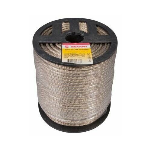 Трос стальной в ПВХ оплетке d=5,0 мм, прозрачный (бухта 100 м) Rexant, 1шт
