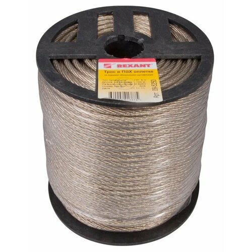 Стальной трос REXANT в ПВХ изоляции d=4.0 мм, катушка 100 метров 09-5240 15700639