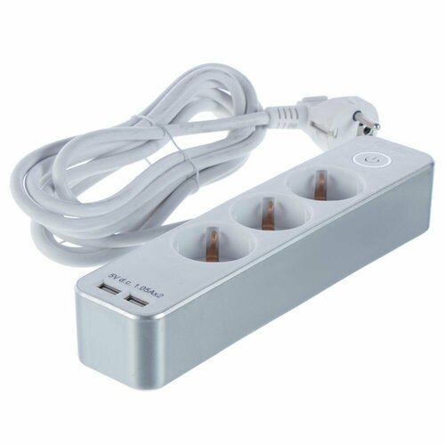 Удлинитель бытовой Lexman 3 розетки с заземлением 3х1.5 мм 3 м 3500 Вт цвет серебристый