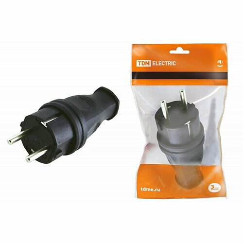Вилка прямая каучук 2Р+РЕ 16А 250В IP44 TDM, цена за 1 шт