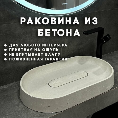 Раковина Art Beton "Narrow", бетон, прямоугольная, накладная установка, 60x35x7.5см, белая