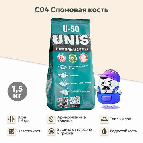 Затирка цементная армированная UNIS (ЮНИС) U-50 Слоновая Кость С04 1,5кг