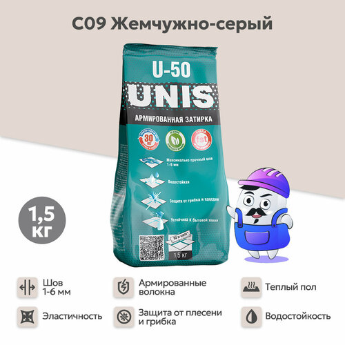 Затирка цементная UNIS U-50 Жемчужно серый С09 1,5кг