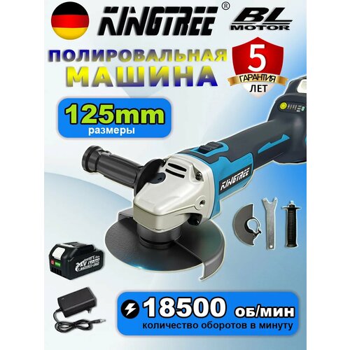 Болгарка KINGTREE, 125 мм, бесщеточный двигатель, 1 аккумулятора, Li-Ion, 6 Ач