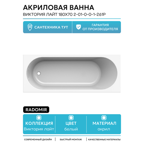 Акриловая ванна Radomir Виктория лайт 180x70 2-01-0-0-1-261Р без гидромассажа